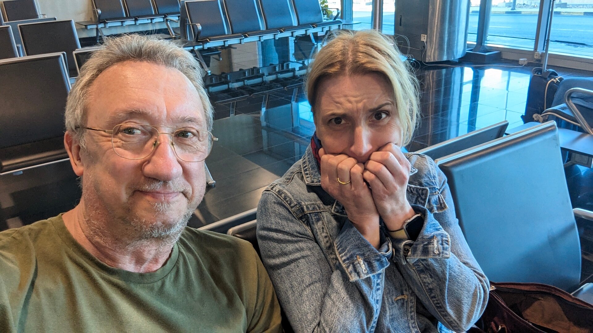 Es ist hier wie immer: Am Flughafen herrschen Temperaturen, bei denen jedem Eisbären das Bürzel am Sitz festfrosten würde. 🥶 Wir sind‘s gewöhnt. Jeansjacke und Halstuch helfen über die Wartezeit. 🙃